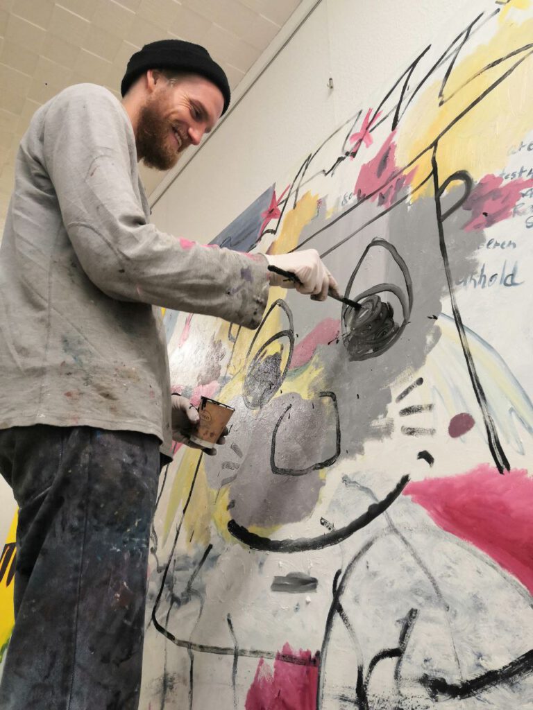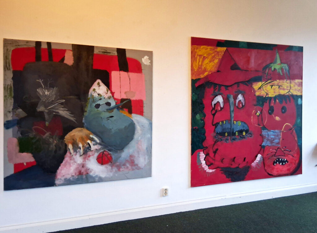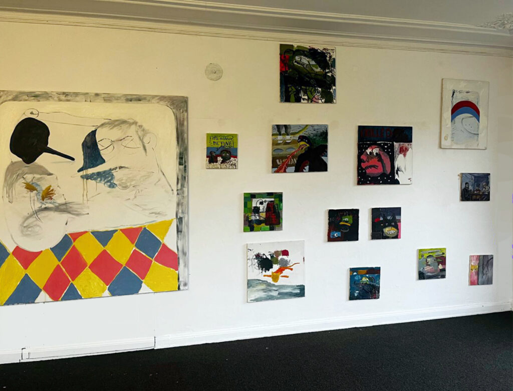 In der Ausstellung „Max und Freund*Innen am Eck“ wurden Arbeiten von Max Pimpernelli gezeigt, die in Kooperation mit befreundeten Künstler*innen entstanden sind.