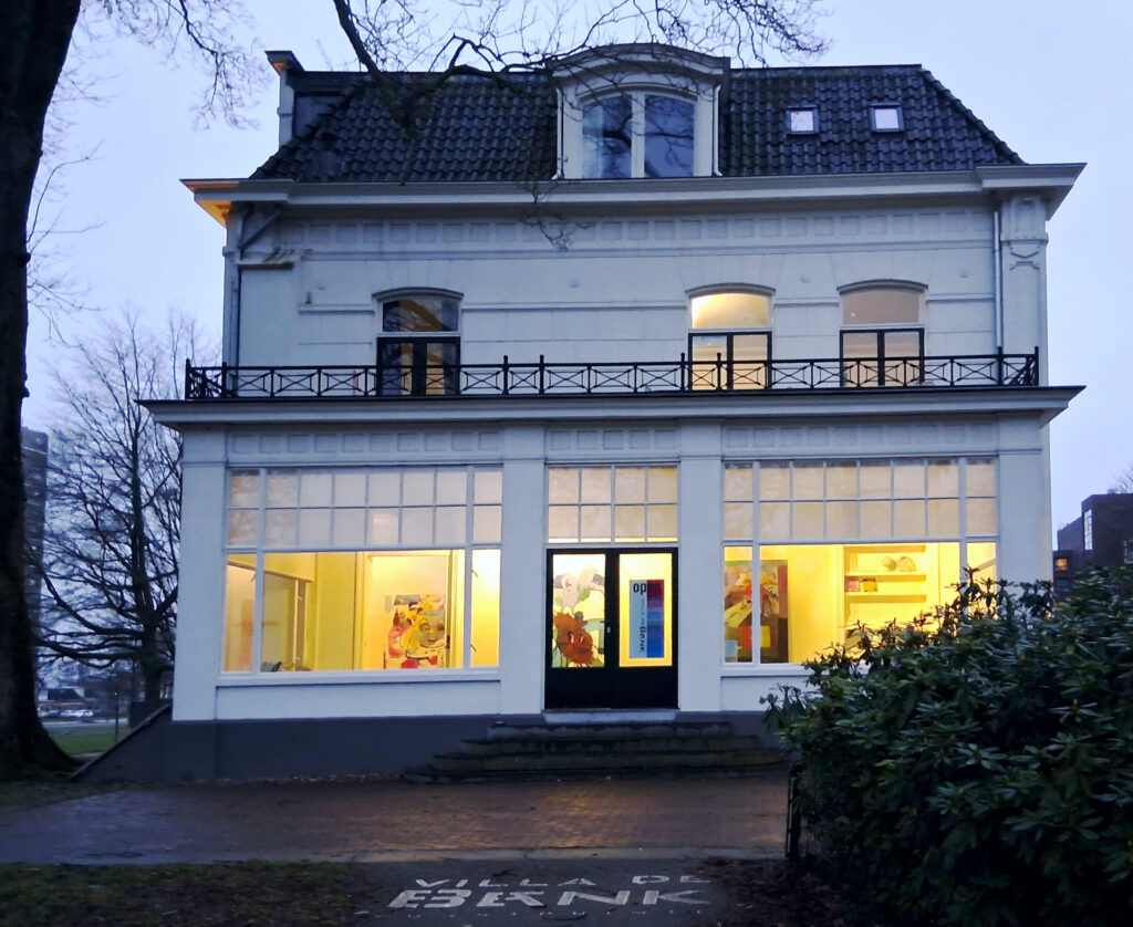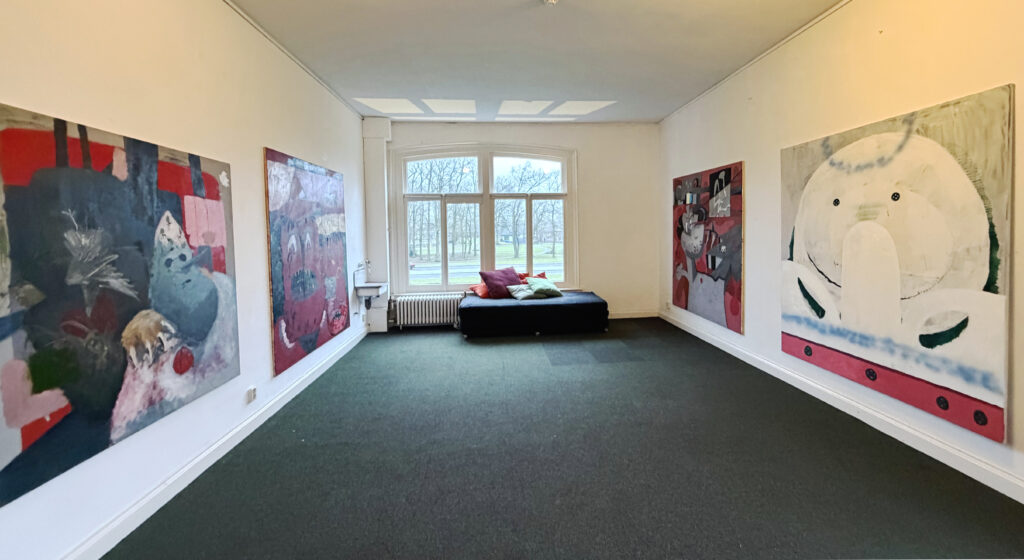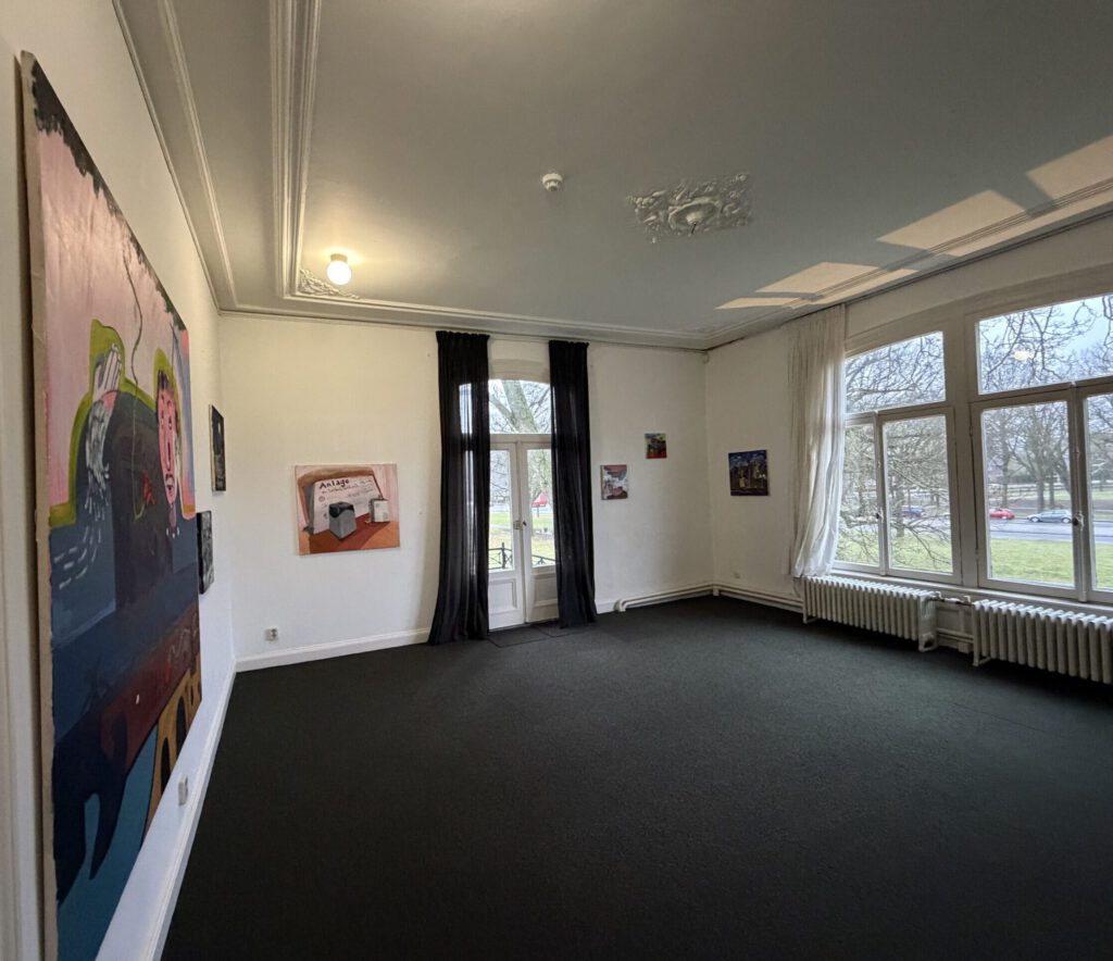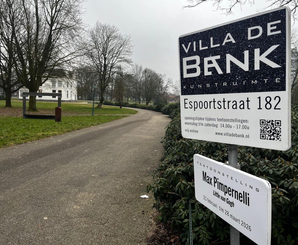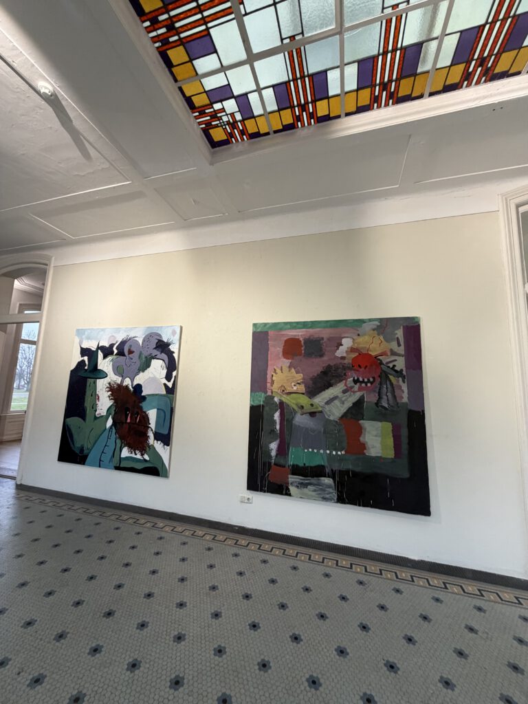 Gleich auf zwei Etagen der beeindruckenden, überaus einladenden Villa am Stadtrand Enschedes sind Pimpernellis Bilder ausgestellt worden und luden zum Betrachten ein. Der Niederländer Paul Silder – selbst malender Künstler und Gründer des Enscheder Kunstraums „Villa de Bank“ – hat es sich zur Aufgabe gemacht, junge Künstlerinnen und Künstler zu fördern – durch das Möglichmachen von Ausstellungen und den Verkauf der Kunstwerke. Paul pflegt seit Jahren gute Kontakte in die Düsseldorfer Kunstszene und ist regelmäßiger Besucher sowohl der Rundgänge In der Kunstakademie als auch der Verkaufsausstellung „Die Grosse“ im Kunstpalast. Auf diesem Weg sind ihm erste Bilder von Max aufgefallen. Bilder, die er gerne in „het witte huis“ ausstellen würde. Ramon Quenders und Steffen Mischke, die selbst ihre Ausstellung bei Paul in Enschede hatten, schlugen die Brücke zur Max Retrospektive Gruppe, sodass die Ausstellung „Little van Gogh“ – passender Weise in den Niederlanden – möglich wurde. Vielen Dank für die internationale Zusammenarbeit!